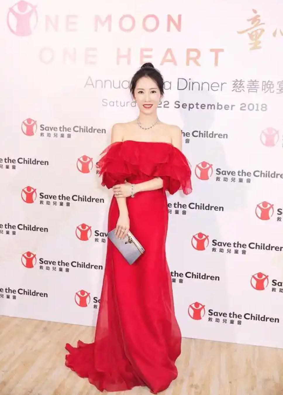 李念随大14岁富豪老公亮相慈善晚宴!穿露肩红裙美艳绝伦,生俩娃仍嫩如少女,这颜值绝了